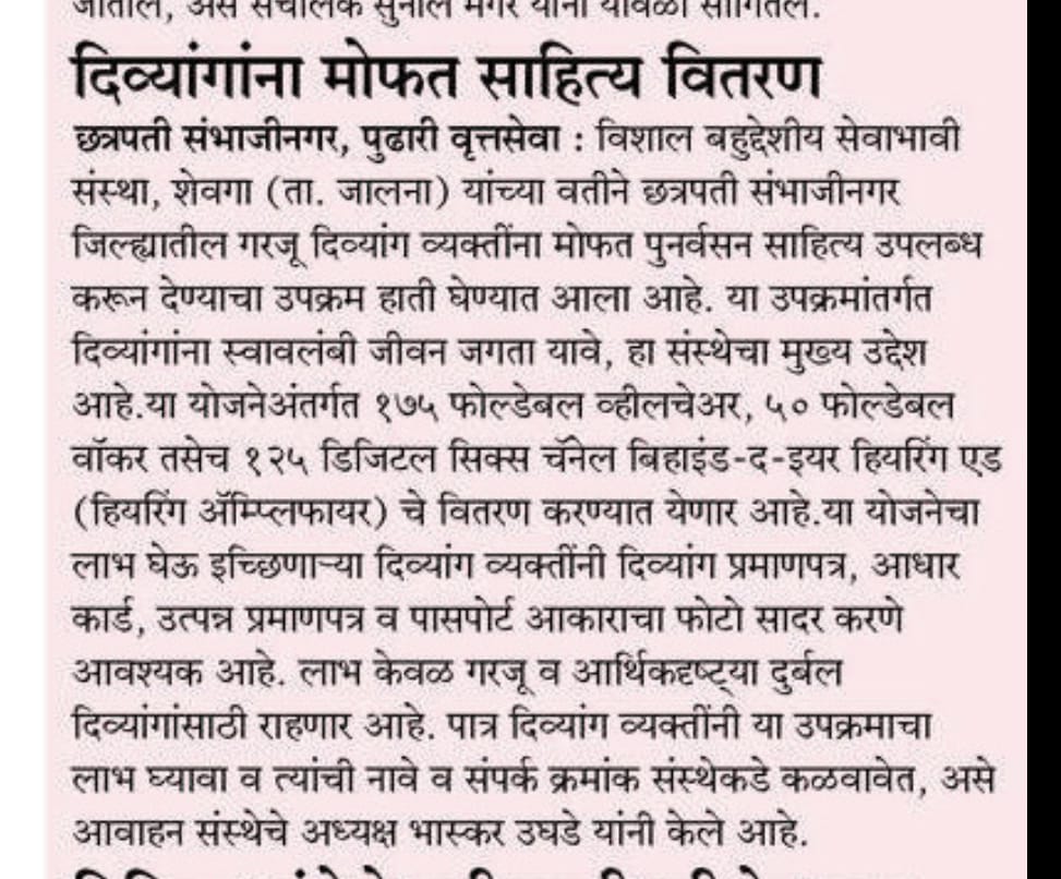 Vishal BahuUdeshiya Sevabhavi Sanstha,Shevaga Po Ner Ta. Dist. Jalna